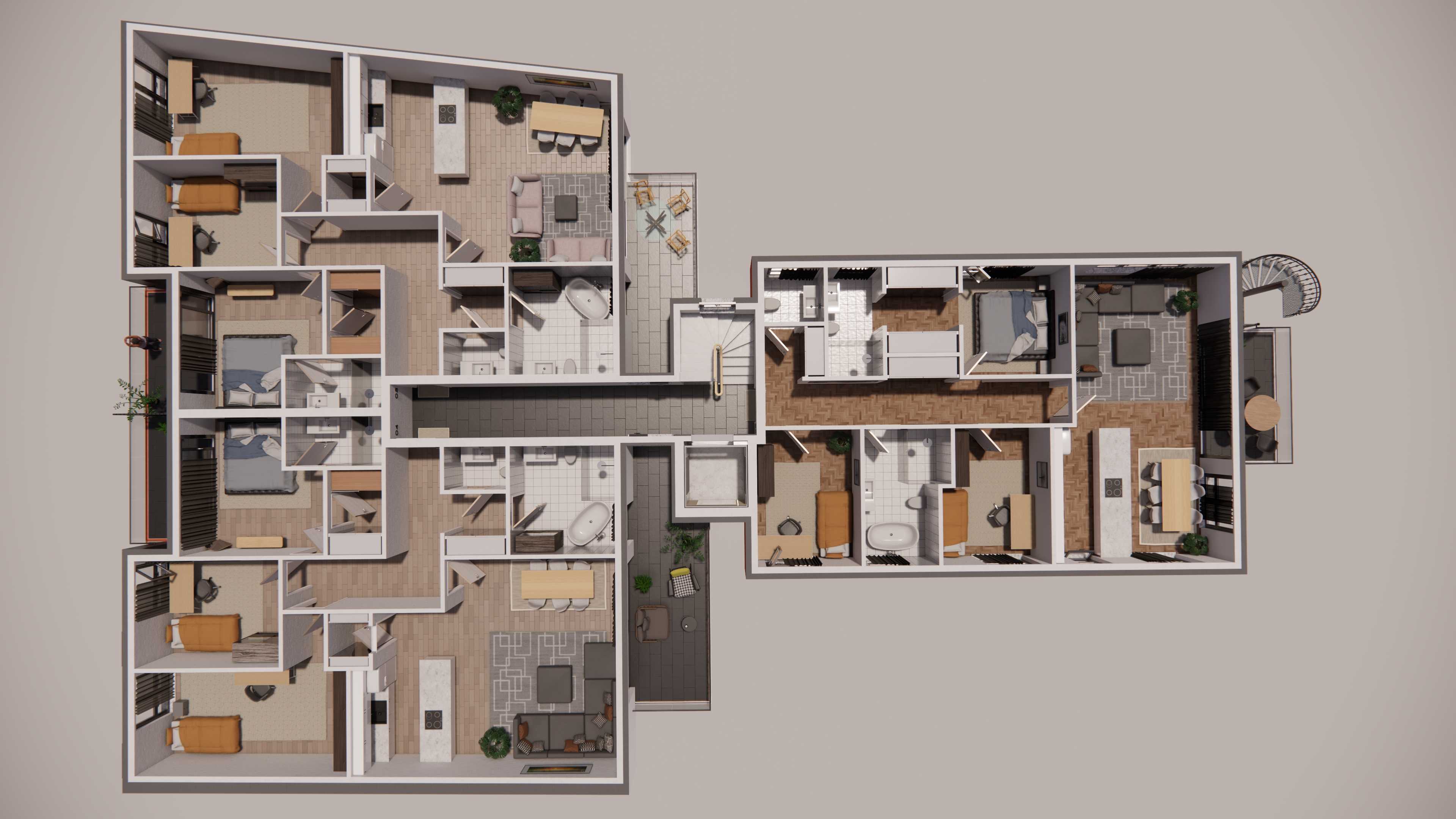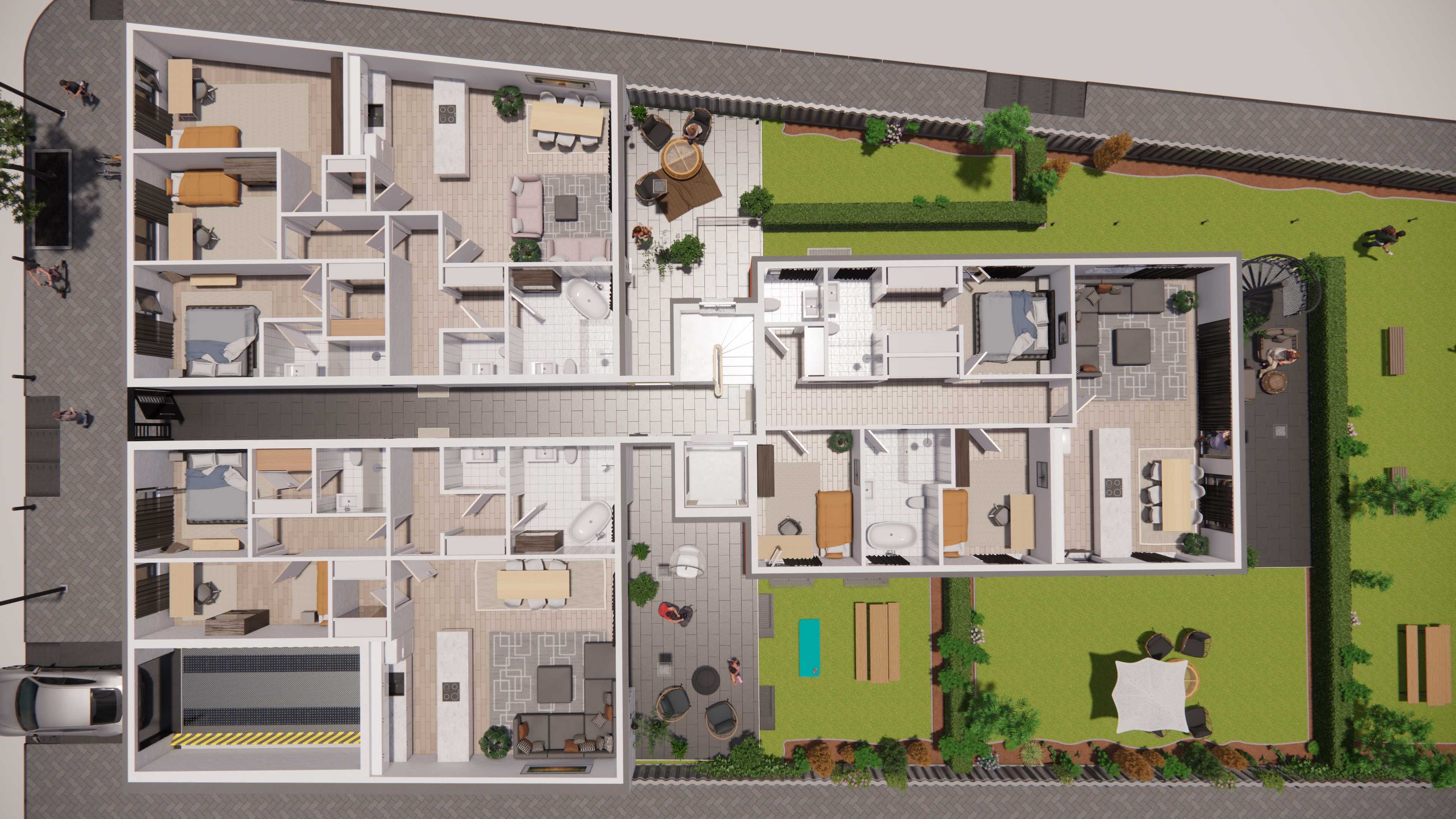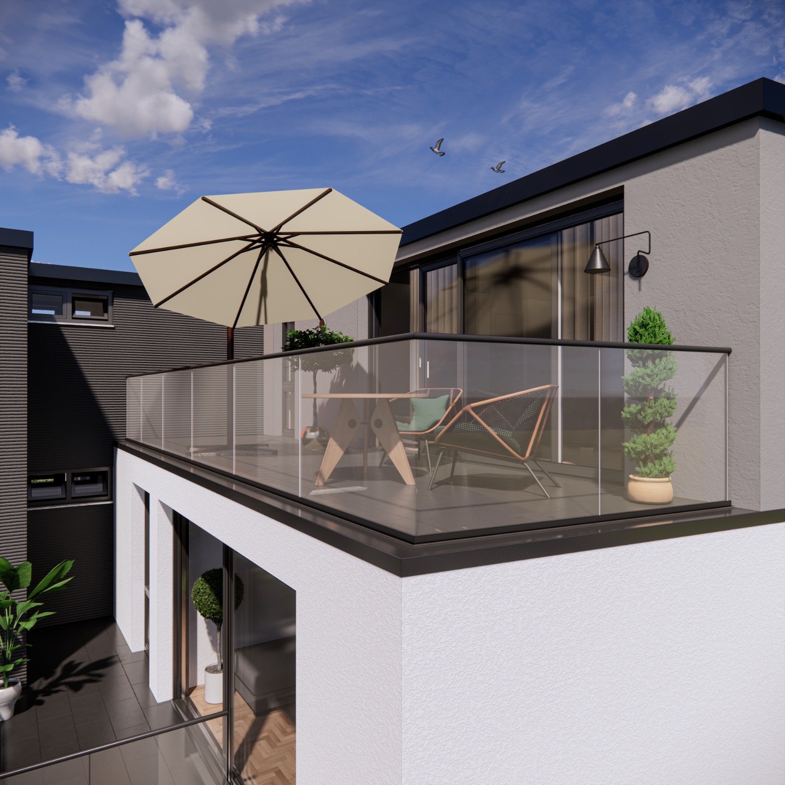 Alle Wohnungen verfügen über große Balkone oder Terrassen, die Erdgeschosswohnungen verwöhnen mit eigenen Privatgärten. In den 2 Penthouse-Wohnungen wohnen Sie ganz allein und exklusiv über den Dächern des Krefelder Innenstadt. Im Kellergeschoss, welches Sie wie auch alle übrigen Etagen bequem mit dem Aufzug erreichen, finden u.a. die gemeinsame Tiefgarage sowie die Einzelkeller für jede Wohnung ausreichend Platz. Auch an ausreichend Stauraum für Waschmaschinen, Kinderwägen und Fahrräder wurde gedacht.